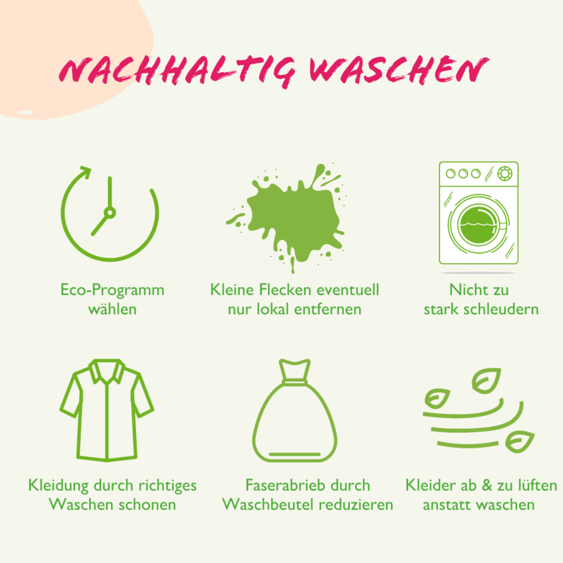 Nachhaltigkeit ist in aller Munde, denn wir wollen (und müssen) unsere Erde besser schützen. Auch beim Waschen kannst du einen wichtigen Beitrag zum Umwelt- und Ressourcenschutz leisten. Benutzt du z.B. ein öko-zertifiziertes Waschmittel auf Basis von natürlichen Rohstoffen schützt du unsere Gewässer und Meere. Fürs Klima ist es wichtig, auf den Trockner zu verzichten und bei niedrigen Temperaturen zu waschen. Doch auch die richtige Wahl des Waschprogrammes und Waschmittels ist wichtig, denn so kannst du deine Kleider schonen und dazu beitragen, dass die textilen Müllberge langsamer wachsen.